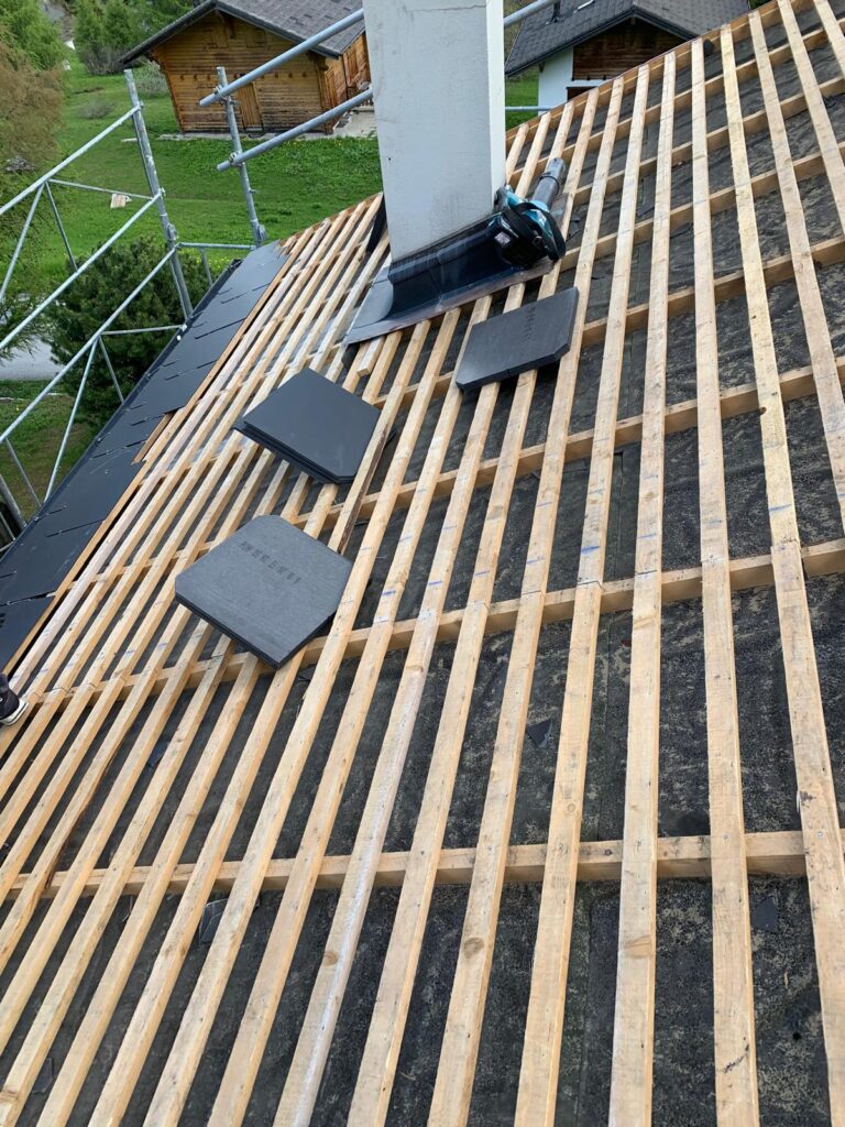 Avec le temps, les tuiles ou les ardoises peuvent se fissurer, se déplacer ou devenir poreuses, ce qui peut provoquer des infiltrations d’eau et fragiliser la toiture, c’est pourquoi nous retirons les éléments abîmés, vérifions l’état de la charpente et du support, posons une protection contre les infiltrations si nécessaire, puis installons une nouvelle couverture en tuiles ou en ardoise avec des finitions soignées afin de garantir une toiture solide, étanche et durable.